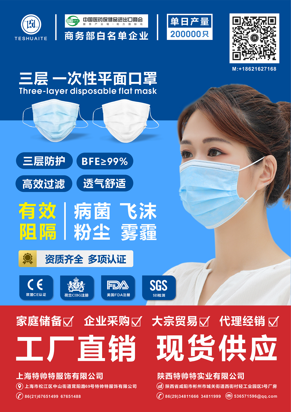 三层一次性平面口罩
